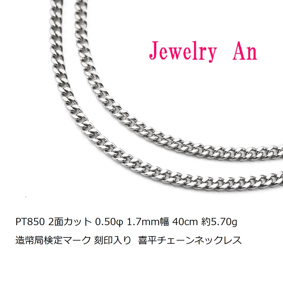 プラチナ850 喜平 チェーンネックレス PT850 2面カット 0.50φ 1.7mm幅 40cm 約5.70g 造幣局検定マーク 刻印入り メンズ レディース キヘイ チェーン