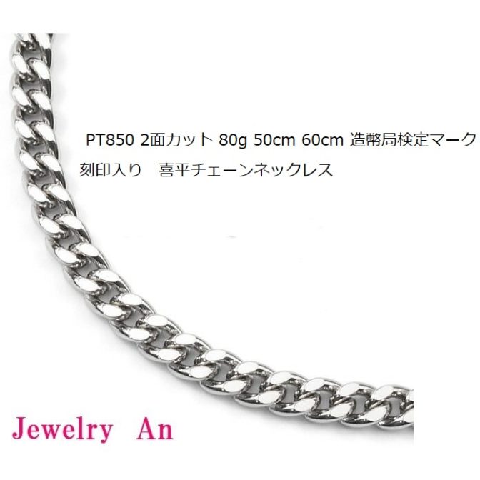 プラチナ850 喜平 ネックレス PT850 2面カット 80g 50cm 60cm 造幣局検定マーク 刻印入り メンズ レディース キヘイ チェーン