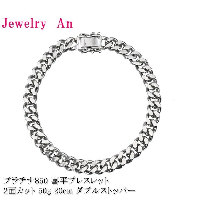 プラチナ850 喜平 ブレスレット PT850 2面カット 50g 20cm 造幣局検定マーク 刻印入り メンズ レディース キヘイ チェーン