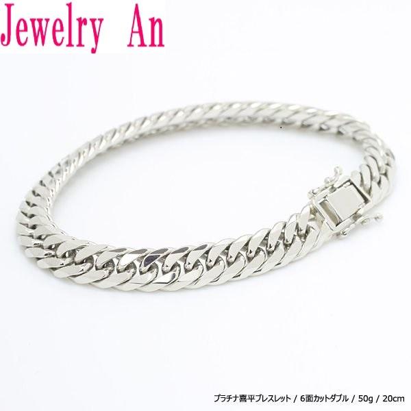 プラチナ850 喜平 ブレスレット PT850 6面カットダブル 50g 20cm ダブルストッパー 造幣局検定マーク 刻印入り メンズ レディース キヘイ チェーン