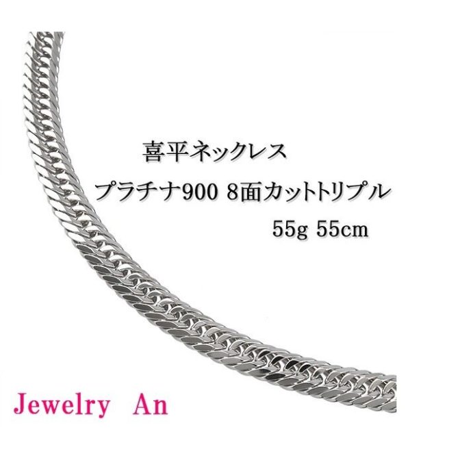 プラチナ900 喜平 ネックレス PT900 トリプル8面カット 55g 55cm 造幣局検定マーク 刻印入り メンズ レディース キヘイ チェーン