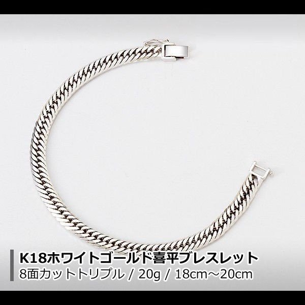 18金 ホワイトゴールド 喜平 ブレスレット K18WG 8面カットトリプル 20g 18cm 20cm 造幣局検定マーク 刻印入り メンズ レディース キヘイ チェーン