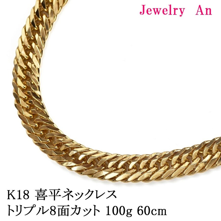 18金 喜平 ネックレス K18 トリプル8面カット 100g 60cm 造幣局検定マーク 刻印入り メンズ レディース キヘイ チェーン