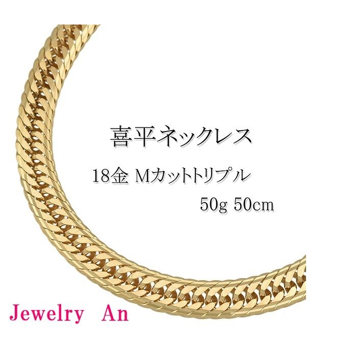 18金 喜平 ネックレス K18 Mカットトリプル 50g 50cm 造幣局検定マーク 刻印入り メンズ レディース キヘイ チェーン