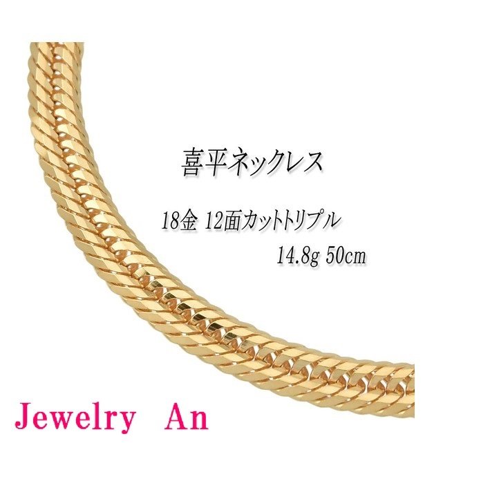 18金 喜平 ネックレス K18 12面カットトリプル 約15g 60cm 造幣局検定マーク 刻印入り メンズ レディース キヘイ チェーン