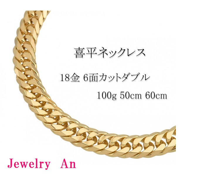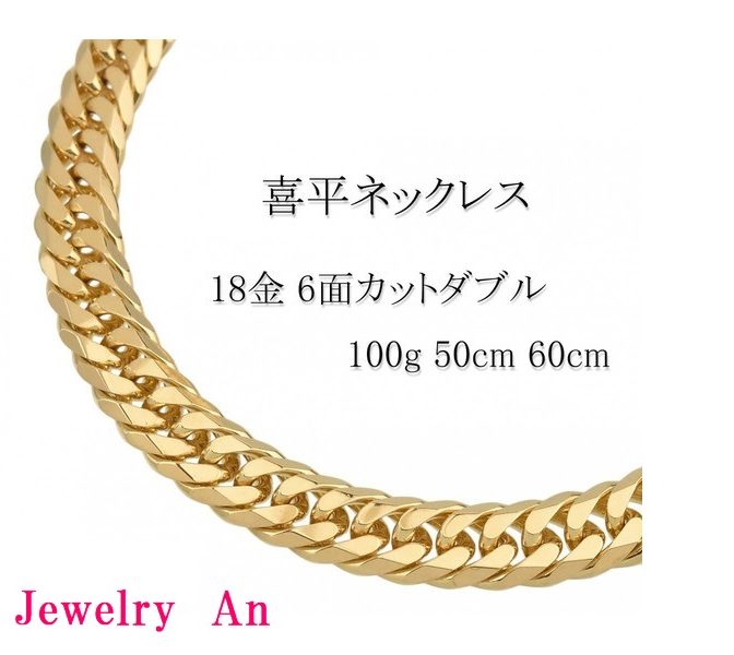18金 喜平 ネックレス K18 6面カットダブル 100g 50cm 60cm 造幣局検定マーク 刻印入り メンズ レディース キヘイ チェーン