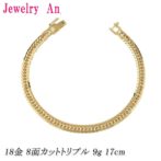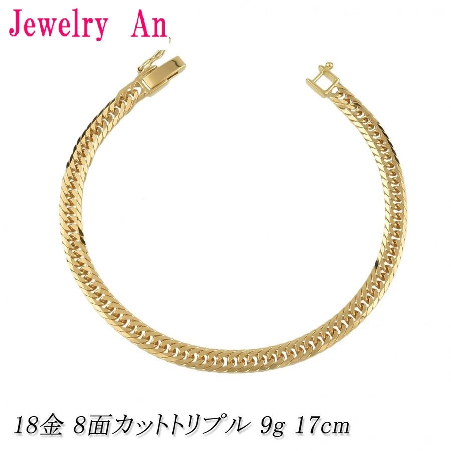 18金 喜平 ブレスレット K18 8面カットトリプル 9g 17cm 造幣局検定マーク 刻印入り メンズ レディース キヘイ チェーン
